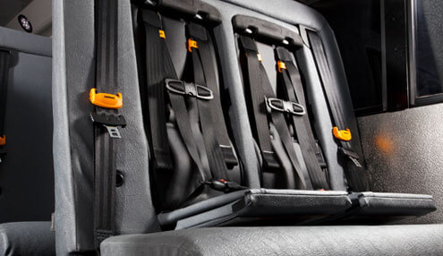 Collins’ one-piece bus design delivers an unrelenting structure that modular buses simply can’t. Like the hull of a ship, Collins’ proprietary design features high-strength, low-allow tubular steel, forming a roof bow system that joins the bus’ interlocking wall and floor beams. The result? Crush-resistant strength to protect our passengers.