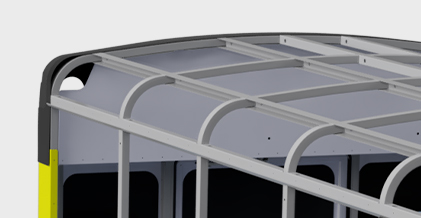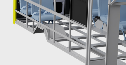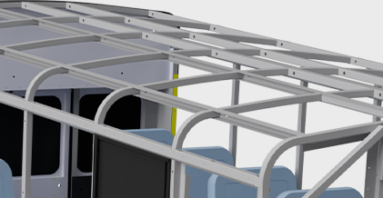Our full-Length, interlocking longitudinal cross members and floor beams are an essential component to student protection. The interlocking design creates a roll cage structure that offers better rollover protection, side impact protection, and a bus that is 5X stronger.